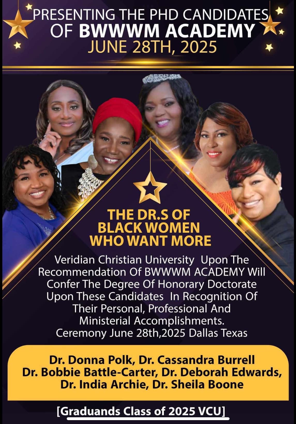 Be referred to Veridian Christian Academy for an Honorary Doctorate Upon Completion